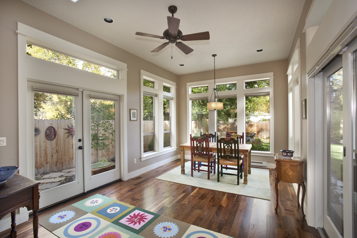 Besides adding a beautiful dining area for our client, the new addition gave a courtyard feel to the back patio. Since the kitchen had looked into the backyard before the addition of the dining room, we added a skylight to preserve its source of natural light. Sometimes you can have your cake and eat it too.