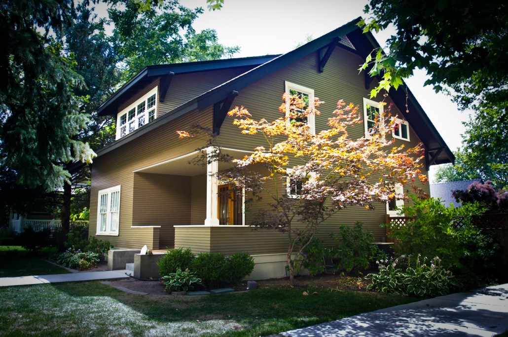 To straighten the fascia line of the roof, we had a custom brace fabricated from angle bar and ran it all the way across the roof line to straighten out the dip. We restored or replaced all the wooden siding, constructed a separate garage with details harmonizing the home’s finishes, rebuilt some existing knee braces, and added the pony wall to the front porch. The net result of these efforts was nothing less than the restoration of an old home to its historic beauty.