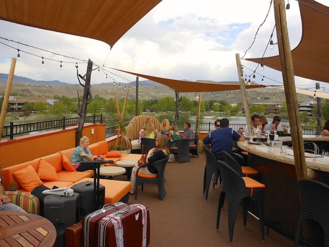 From a reception area where Egyptian fabrics and balsam wood roots vie texturally with exotic upholsteries, through a wine bottle tunnel supported by pillars from on old Roman library, past a lounge dominated by a metal sculpture of Medusa, the journey just gets more visually stimulating. A Greek aqueduct hangs over the bar, dripping suspended crystals. A glycerin water fall shares a space with its elemental opposite, fire. Antique doors that include those from a 14th century Turkish castle open into a conference room just a few feet from a bar crowned with sandstone from a more local source, Table Rock. The centerpiece of the main dining area is the hand blown “Iced Antlers” chandelier created by local glass sculptor Filip Vogelpohl, owner of Boise Art Glass.