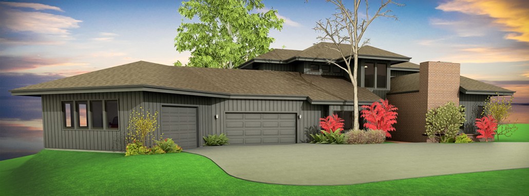 We have invested in 3D modeling capability for precisely the reasons this case study presents. Using this technique with a home that already has an unusual roof line, we were able to look at shed roof designs that included clipped and unclipped versions of the existing garage roofline, then study the ramifications of these options from different perspectives.
